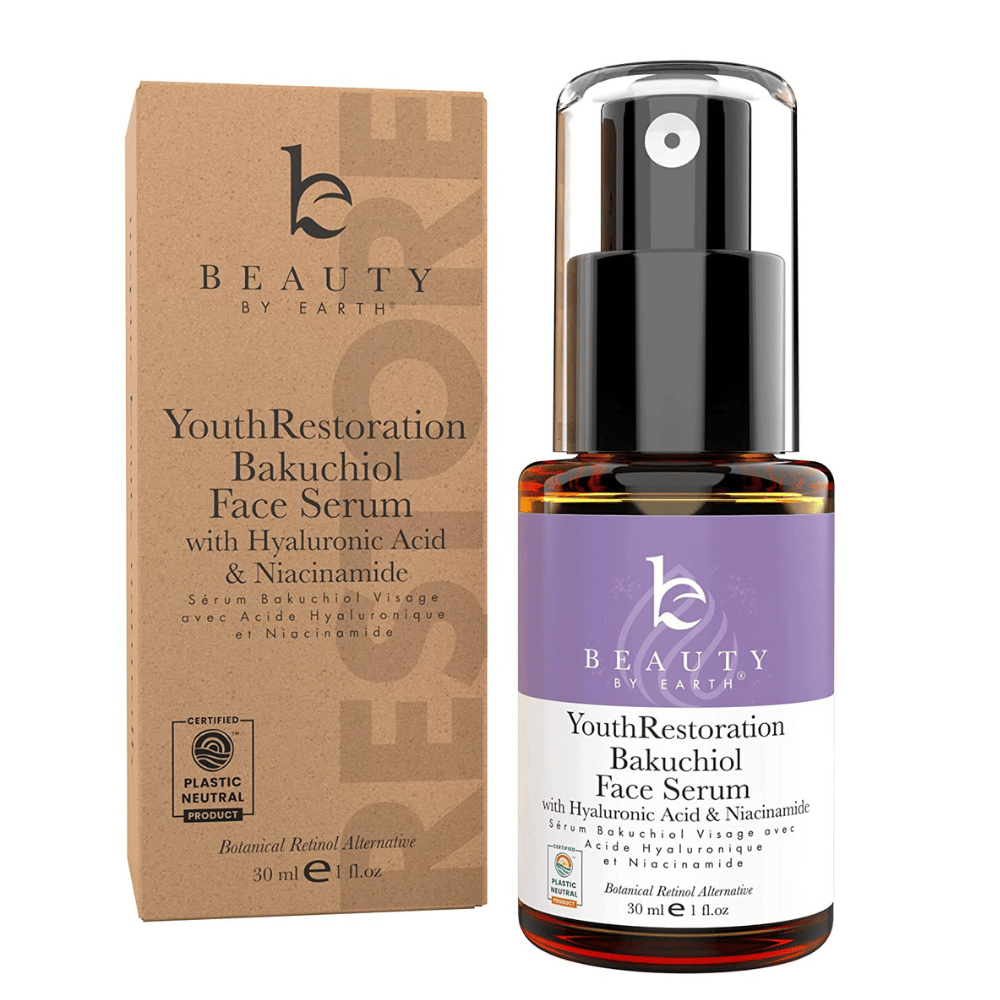 Beauty By Earth will help you achieve healthy, glowing, beautiful skin with their incredible anti-aging bakuchiol face serum! It is designed for men and women with all skin types, including acne-prone skin types. It contains potent ingredients that work wonders to reduce the appearance of wrinkles, acne spots, and blemishes. It also helps lighten dark spots on your skin and even prevents new ones from forming.